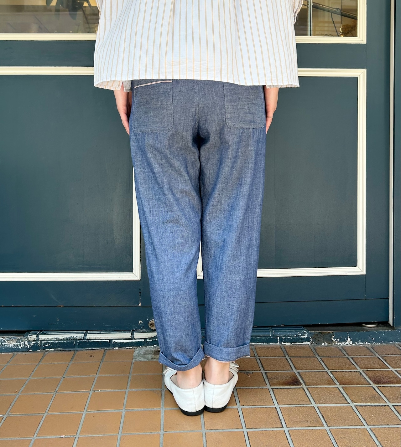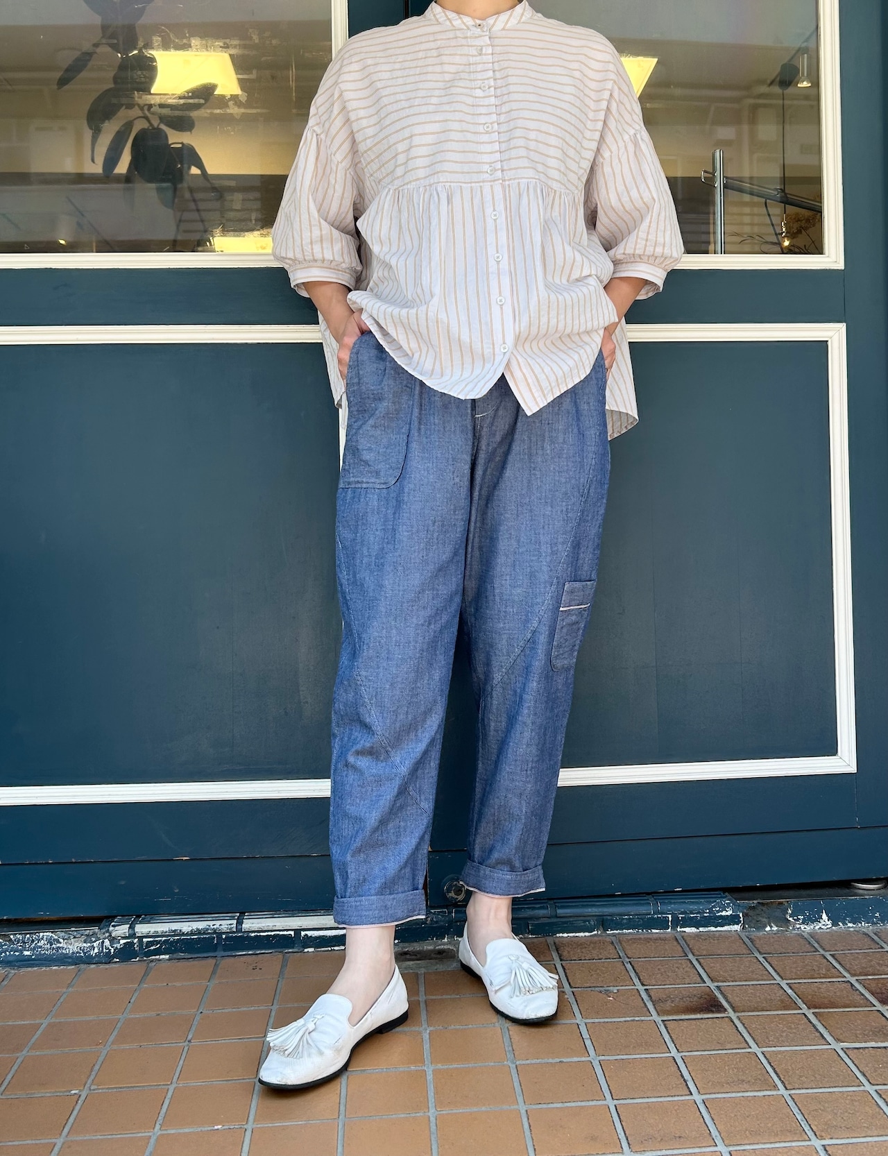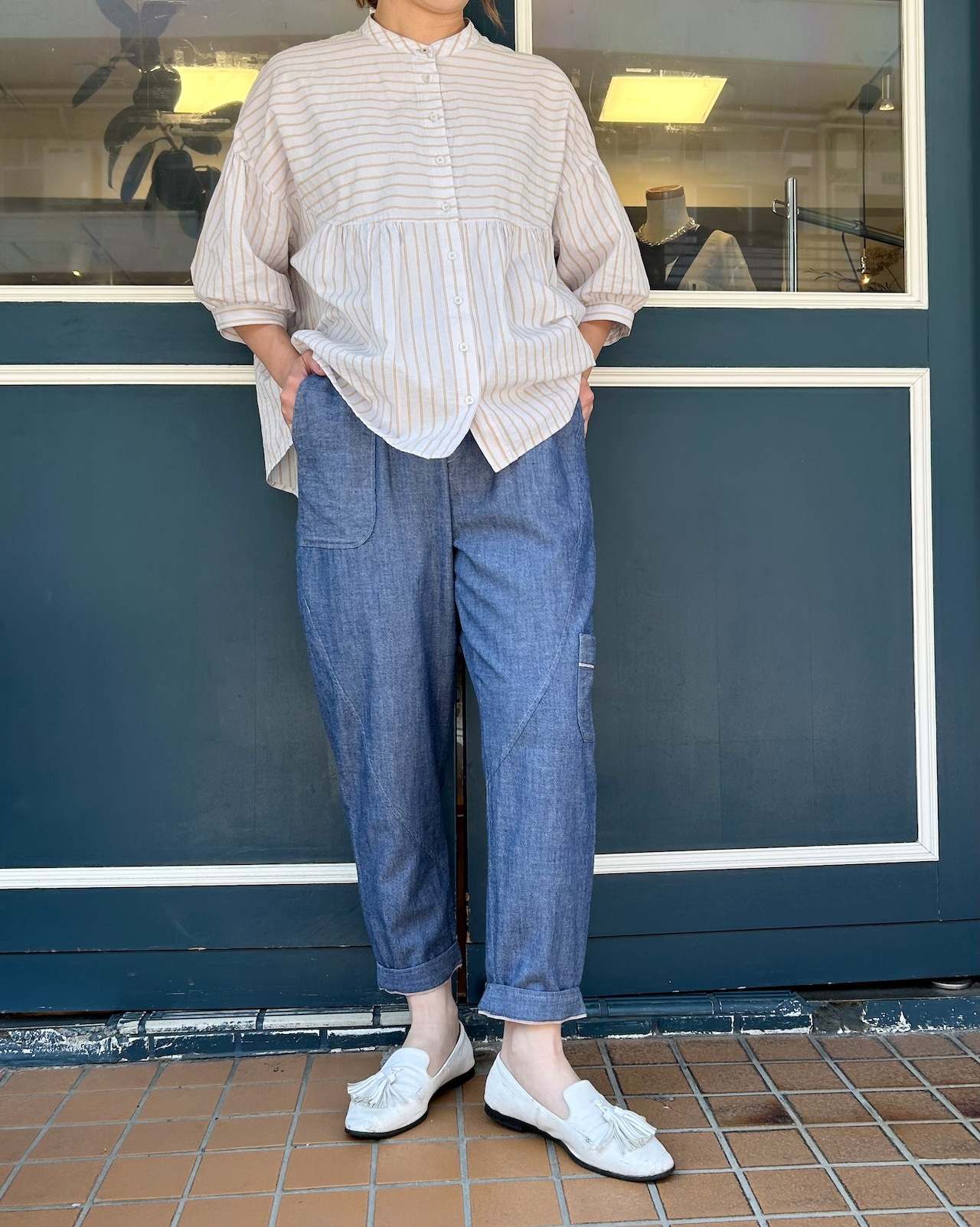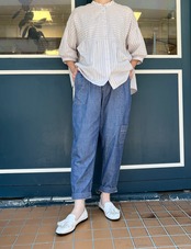 膝下細っそりのシルエットで、全体的にスッキリとした印象です。
