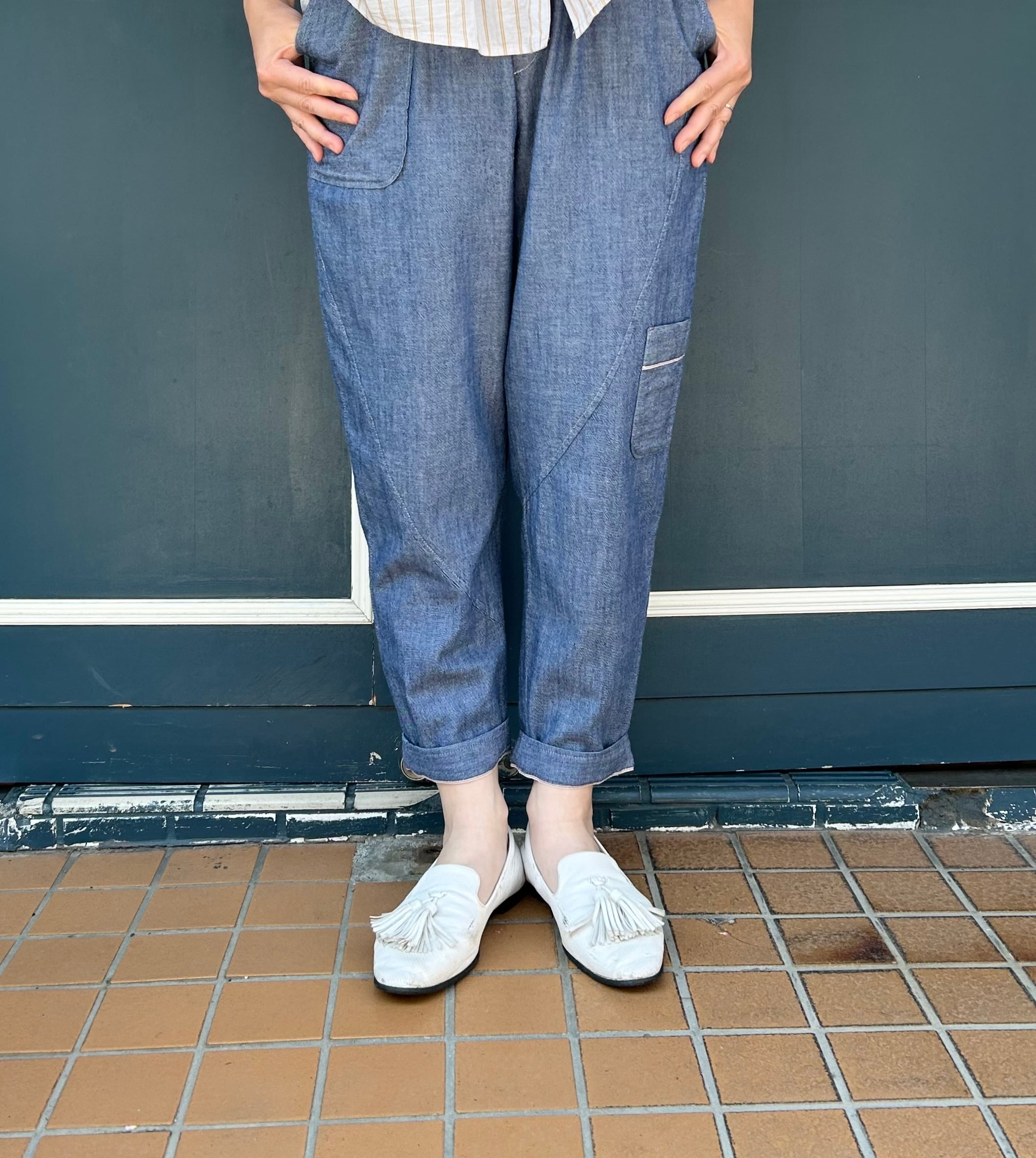 左右非対称のデザインがとってもかわいいエッグパンツ。