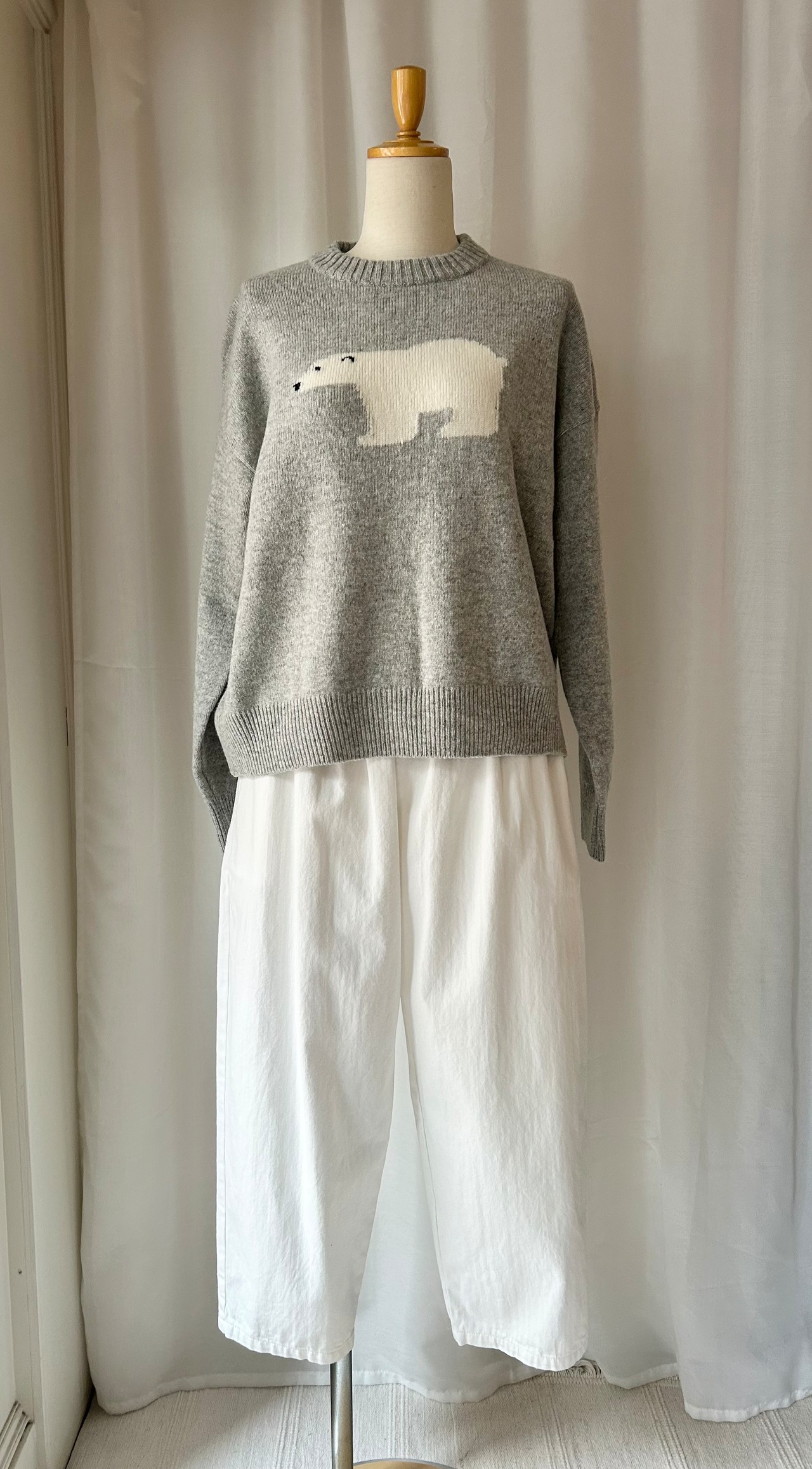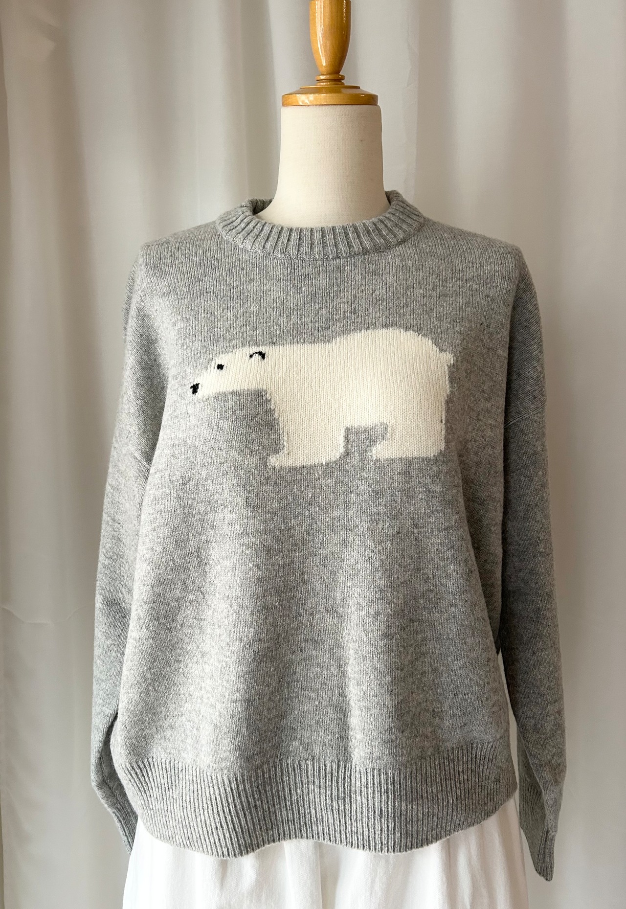 胸元にあしらわれた大きなシロクマのモチーフが