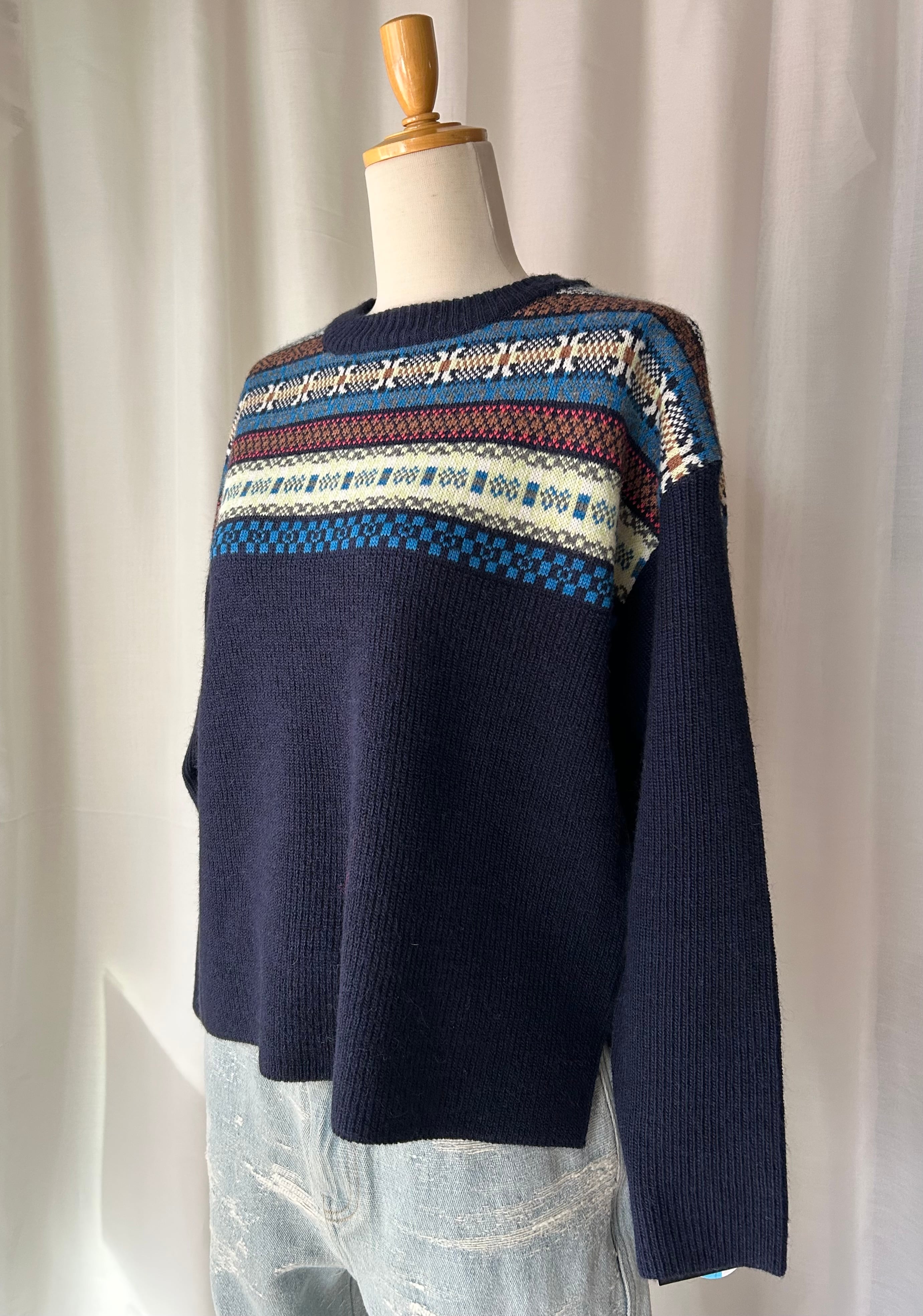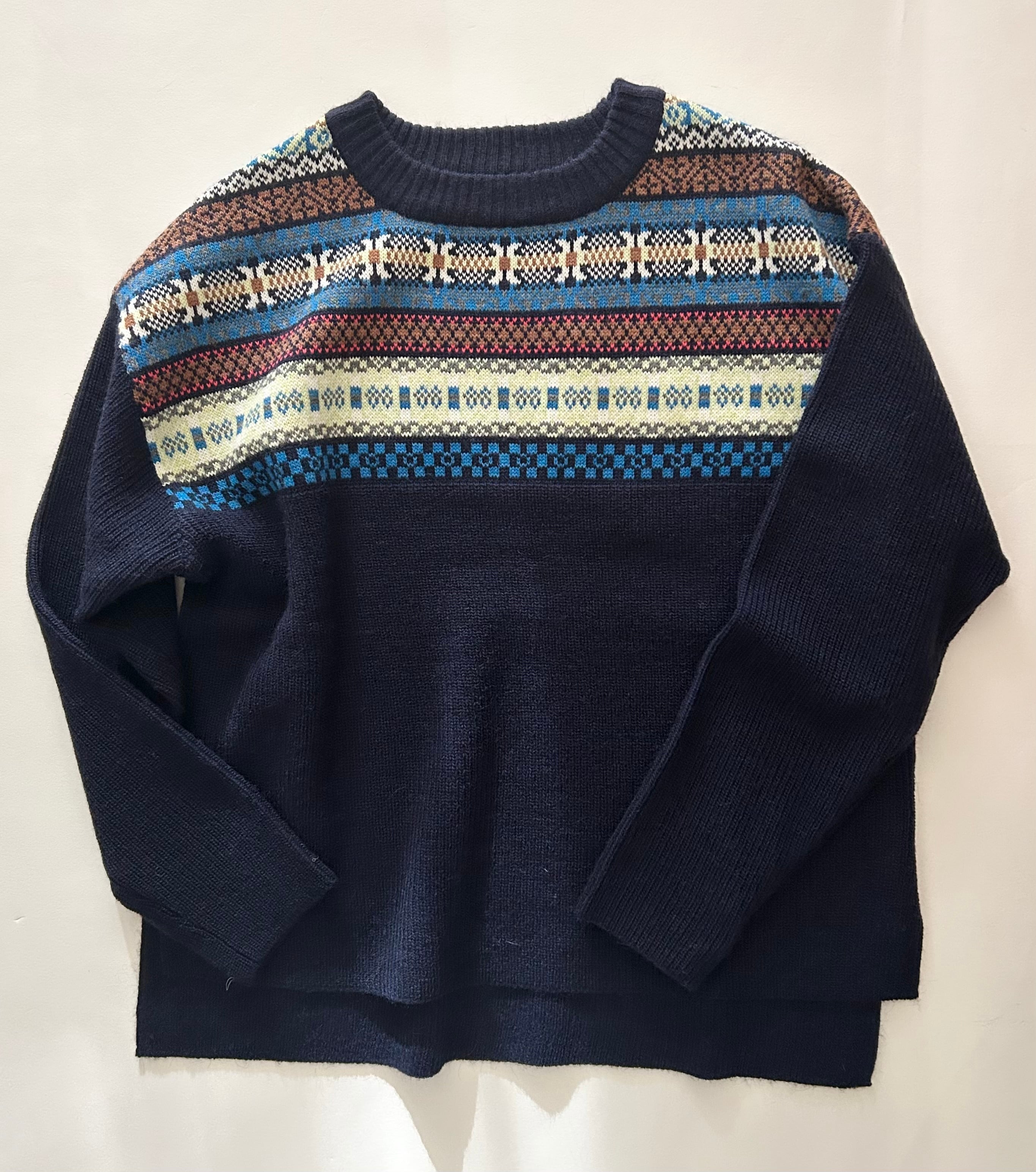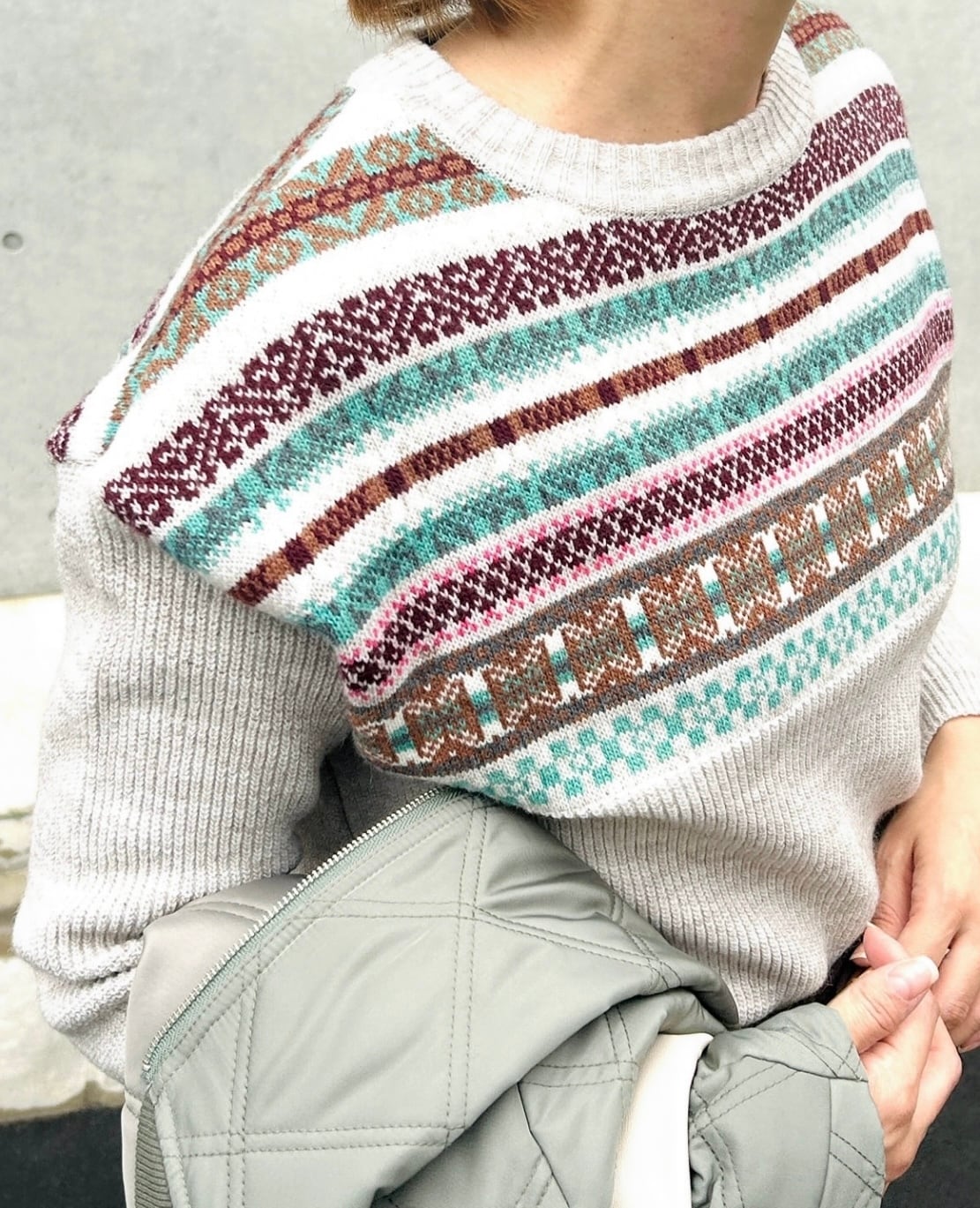 冬らしいフェアアイル柄がかわいいニットトップス。