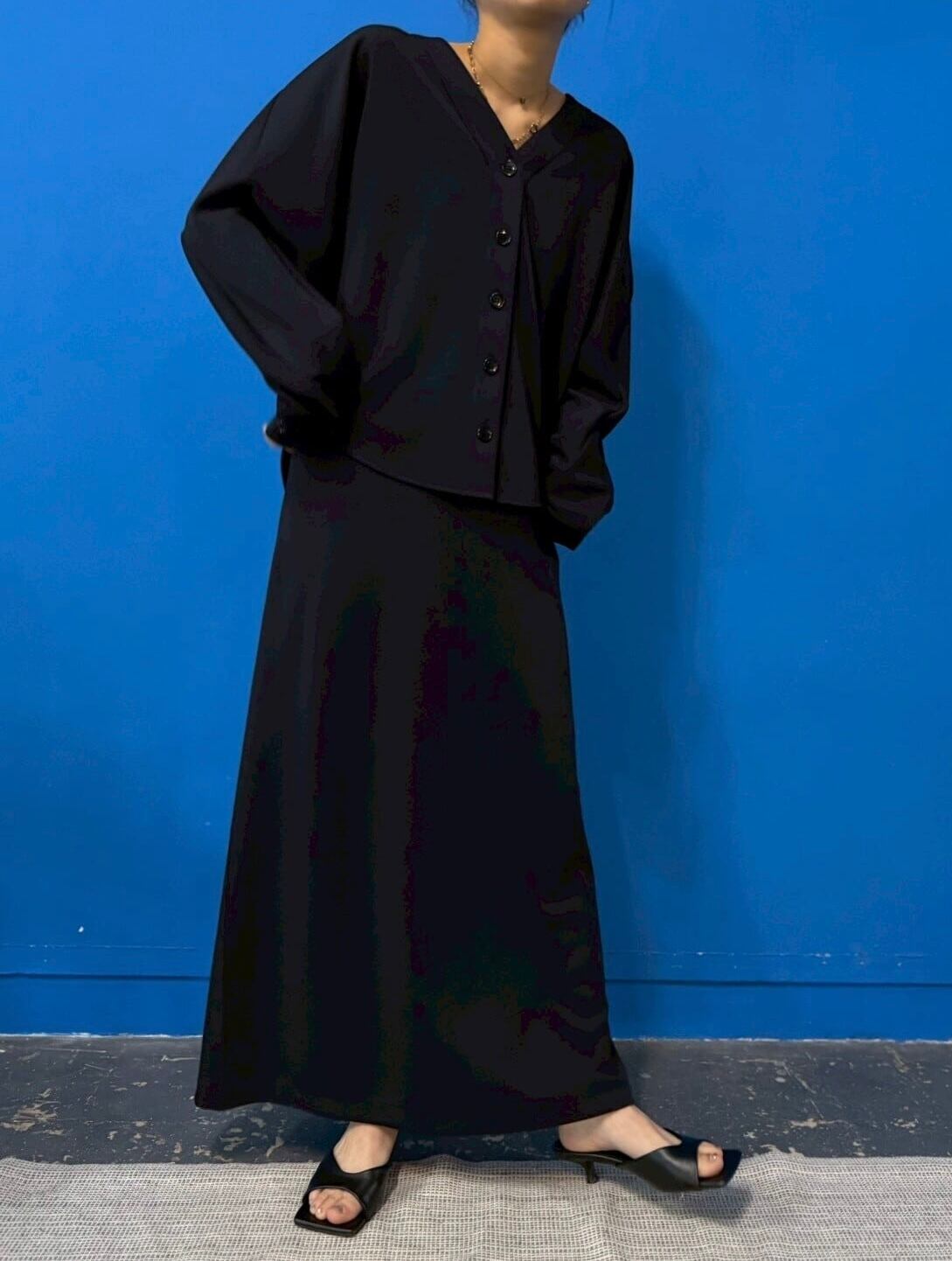前後差のある着丈で、さらっと羽織るだけでこなれた印象に。